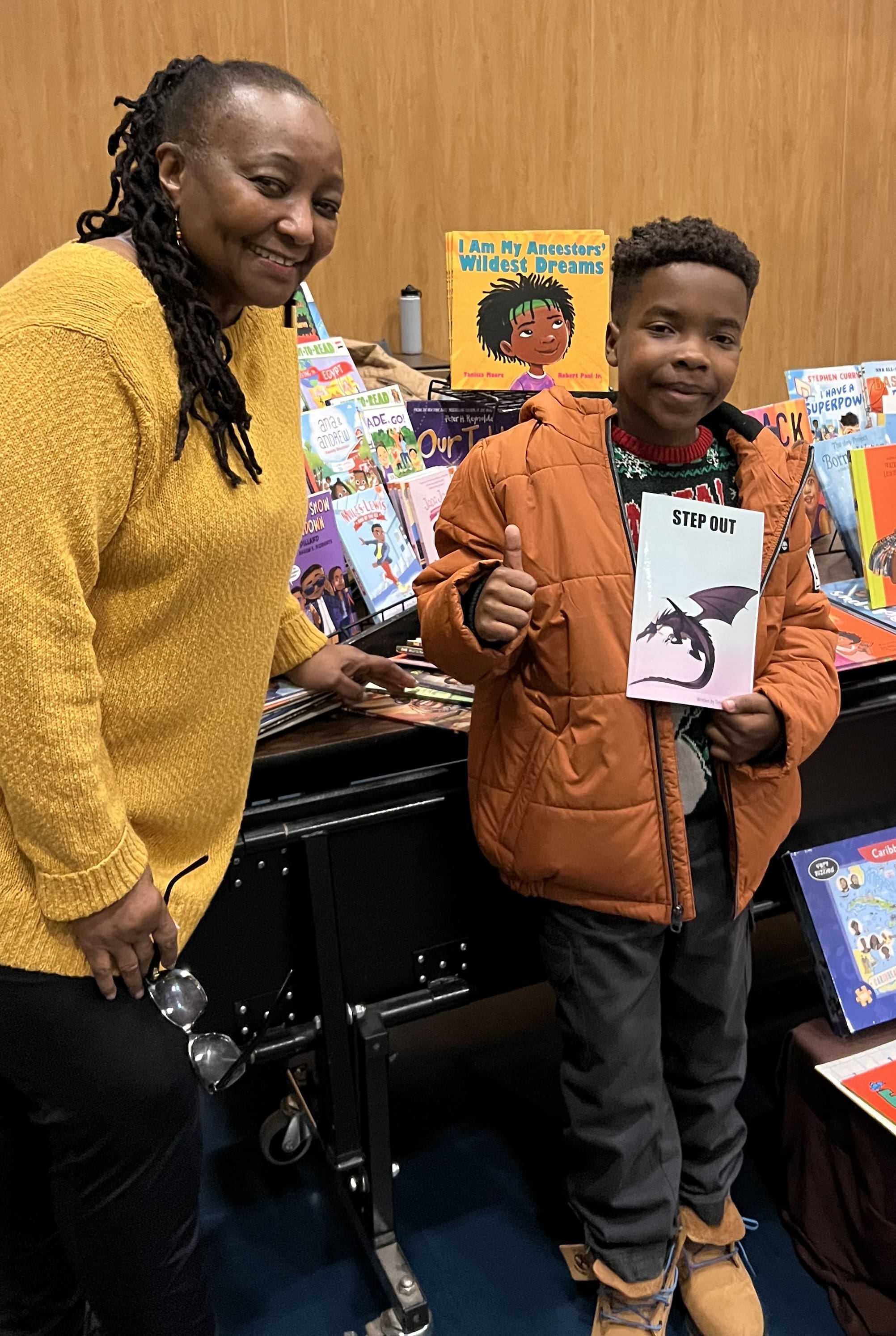 as student author, Timothy Boykin read from his book, Step Out.He is a talented fourth grader at HUSD and has