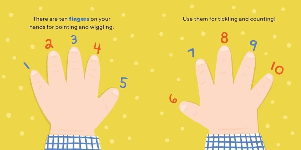 Which body part is that?—Help your child learn to point out their belly button, count their fingers and touch their elbows!